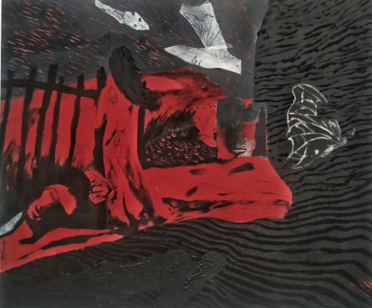 The third exhibition of the Halgheh Group, titled “Loneliness,” is inspired by events that were happening in our country and the feeling of concern about our unpredictable future. This exhibition was our group’s last exhibition, and since then, the pressure of censorship and deprivation of freedom has increased for us.